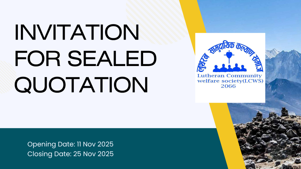 लुथरन सामुदायिक कल्याण समाज अन्तर्गत सी एण्ड ई परियोजनामा जेन-जी आन्दोलन बाट प्रभावित स्थानीय निकाय हरूलाई अति आवश्यक कार्यलय उपकरणहरू उपलब्ध गराउनको लागि दरभाउ पत्रमा उल्लेखित उपकरणहरू आपुर्ति गर्नको लागि ईच्छुक आपुर्ति कर्ता हरूमा यो सुचना प्रथम पटक प्रकाशित भएको मितिले १४ औँ दिन पाँच बजे भित्रमा तपशिल बमोजिम सिलबन्दी दरभाउ पत्र पेश गर्नुहुन सम्बन्धित सबै को जानकारीका यो सुचना प्रकाशित गरिएको छ ।